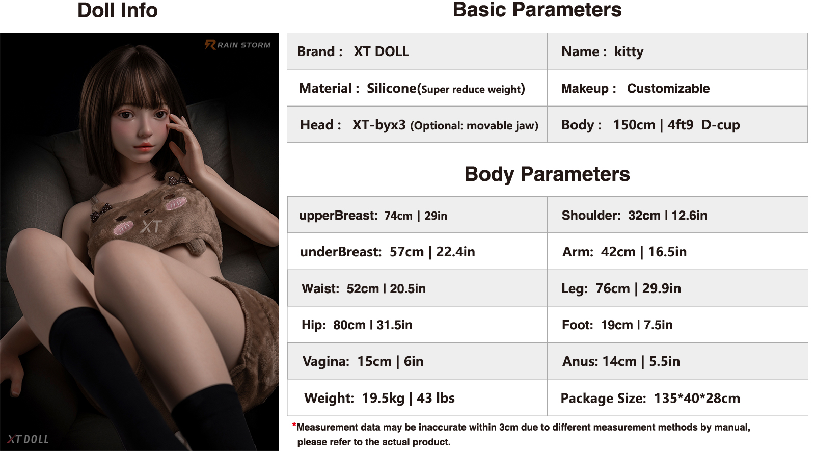 XT Doll Full Silicone 150 Cm D-Cup XT-byx3 Kitty