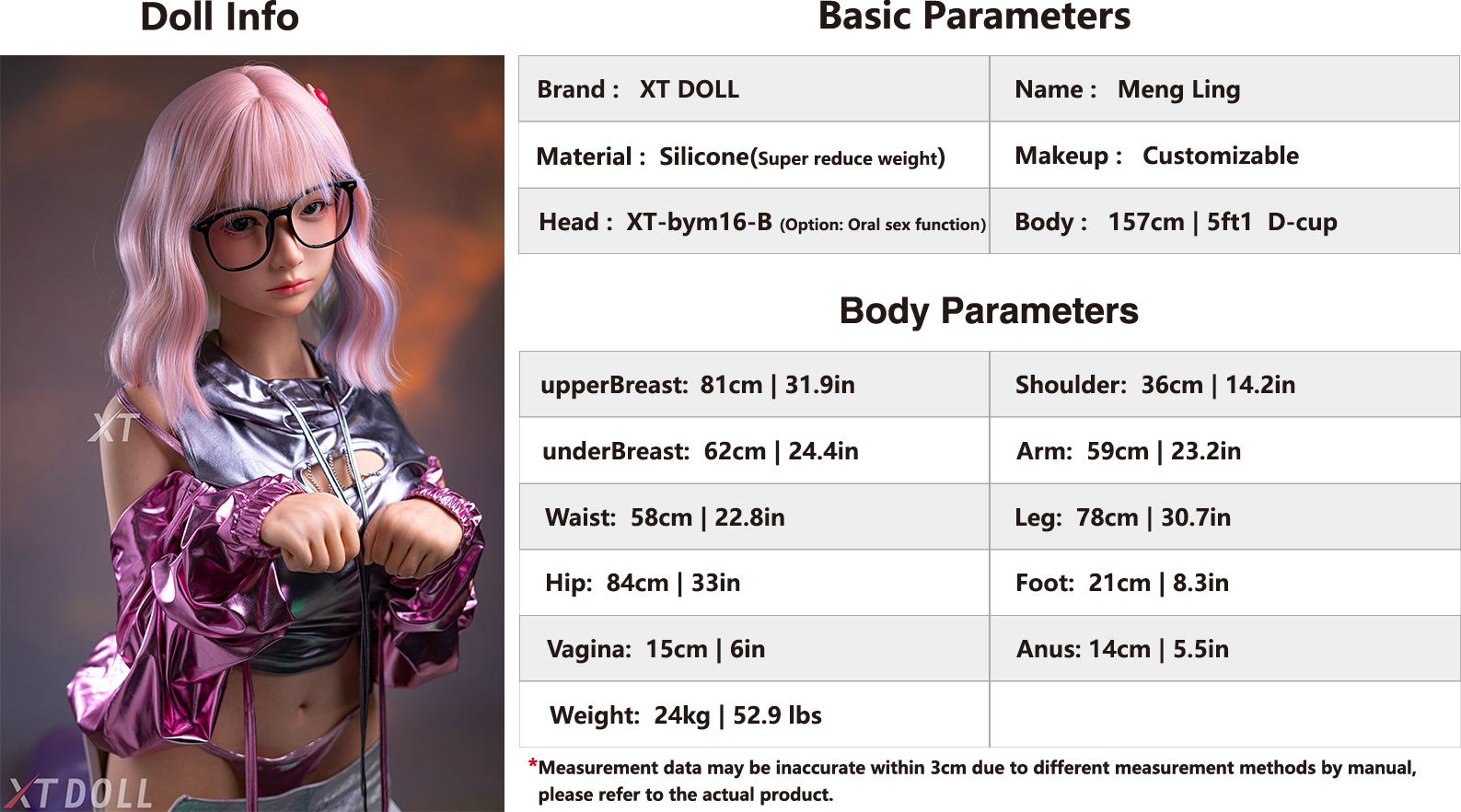 XT Doll Full Silicone 157 Cm D-Cup XT-bym16-B Meng Ling